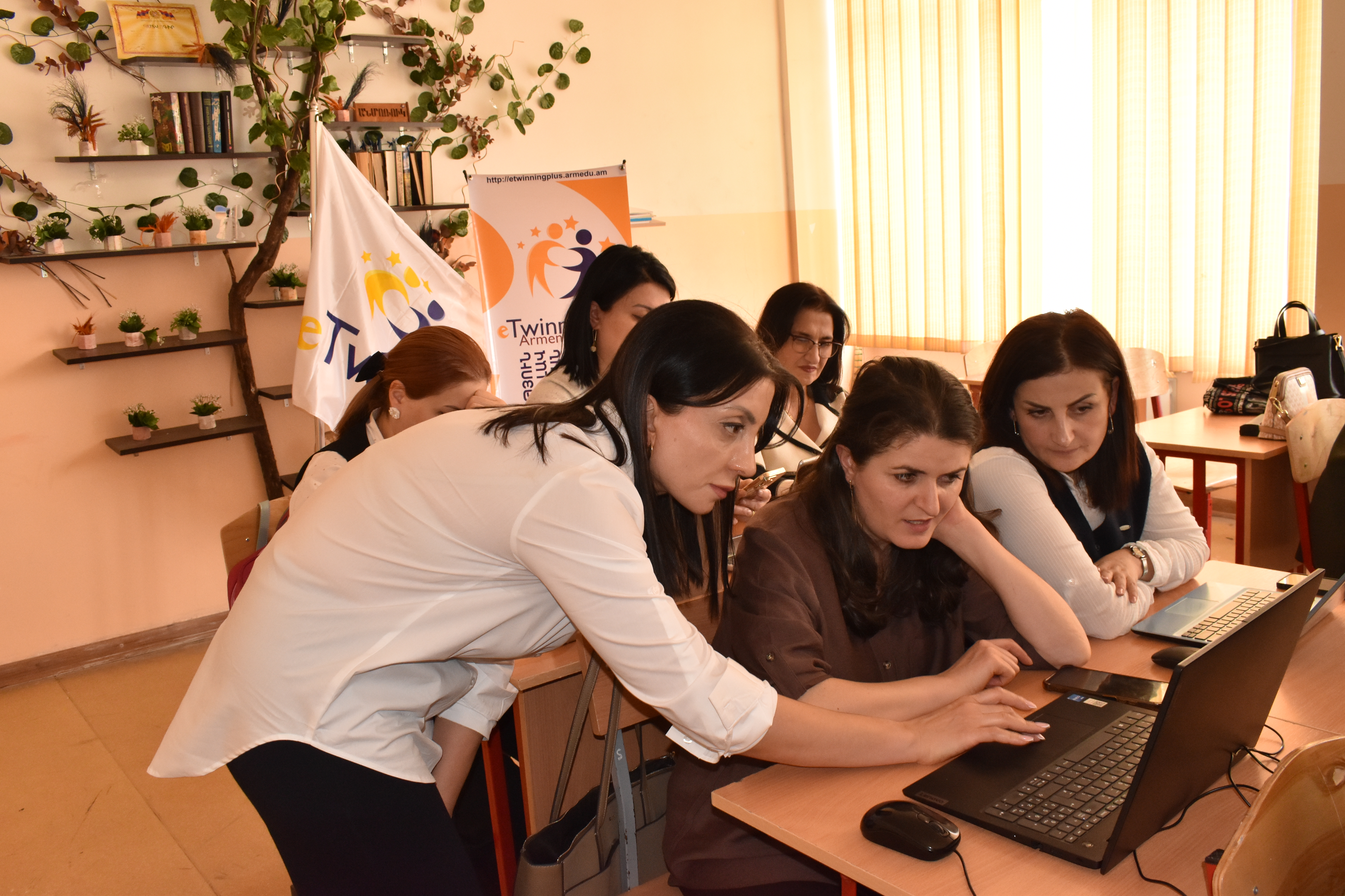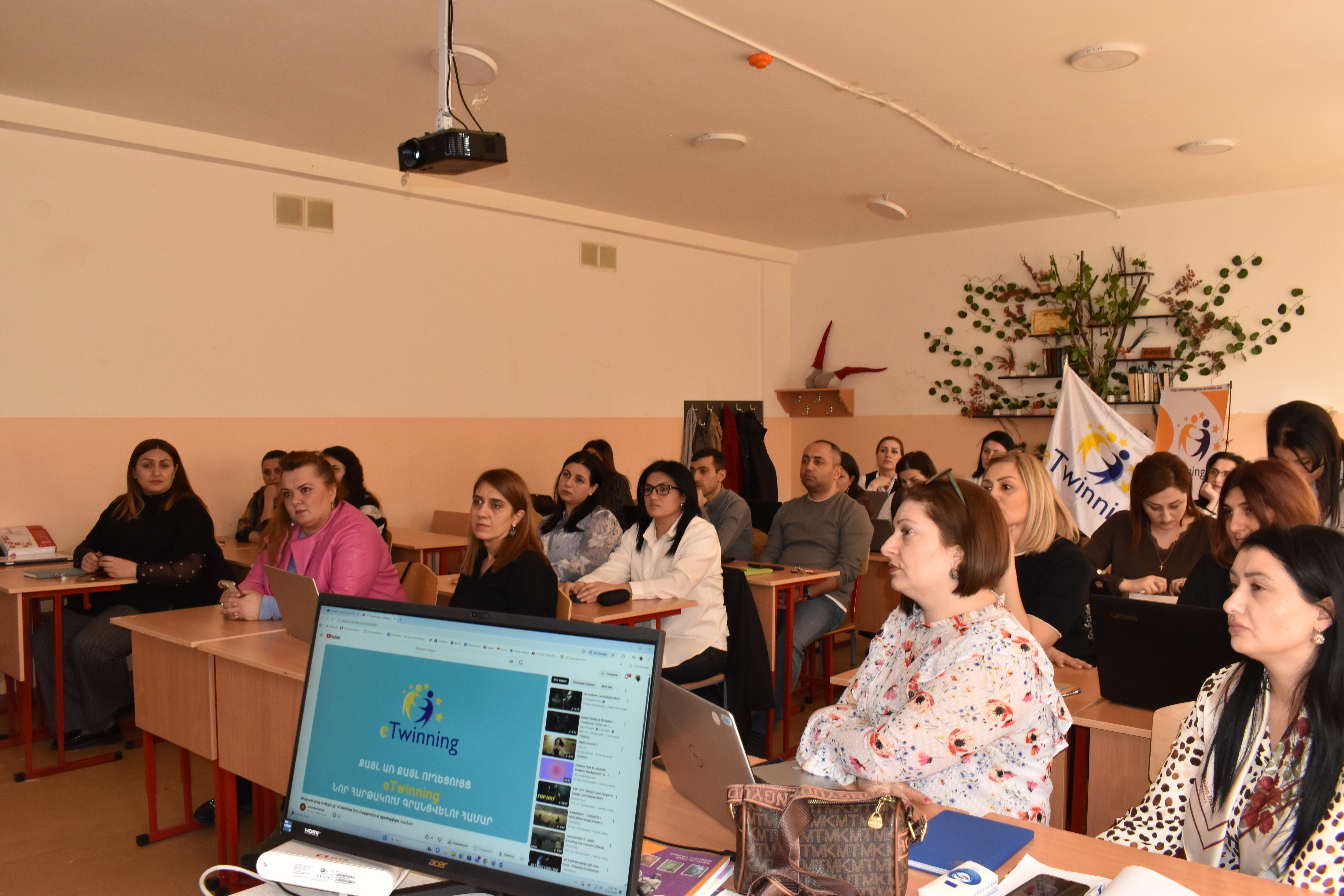 eTwinning-ի փորձառու դեսպանները երկու օր շարունակ վերապատրաստել են 50 սկսնակ ուսուցիչների՝ ներկայացնելով, թե ինչպես կարելի է գրանցվել eTwinning հարթակում, աշխատել այդտեղ, իրականացնել նախագծեր և դիմել որակի հավաստագրեր ստանալու համար։